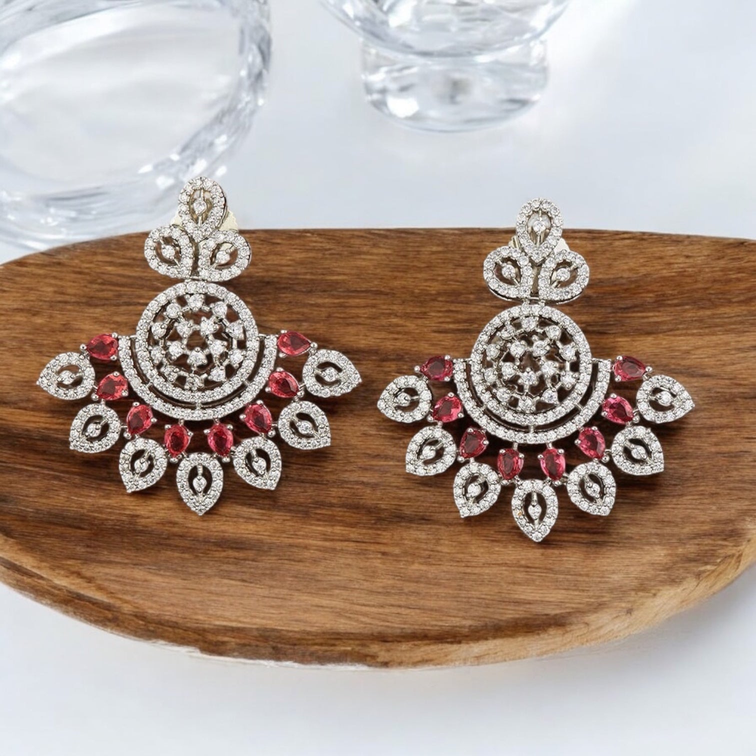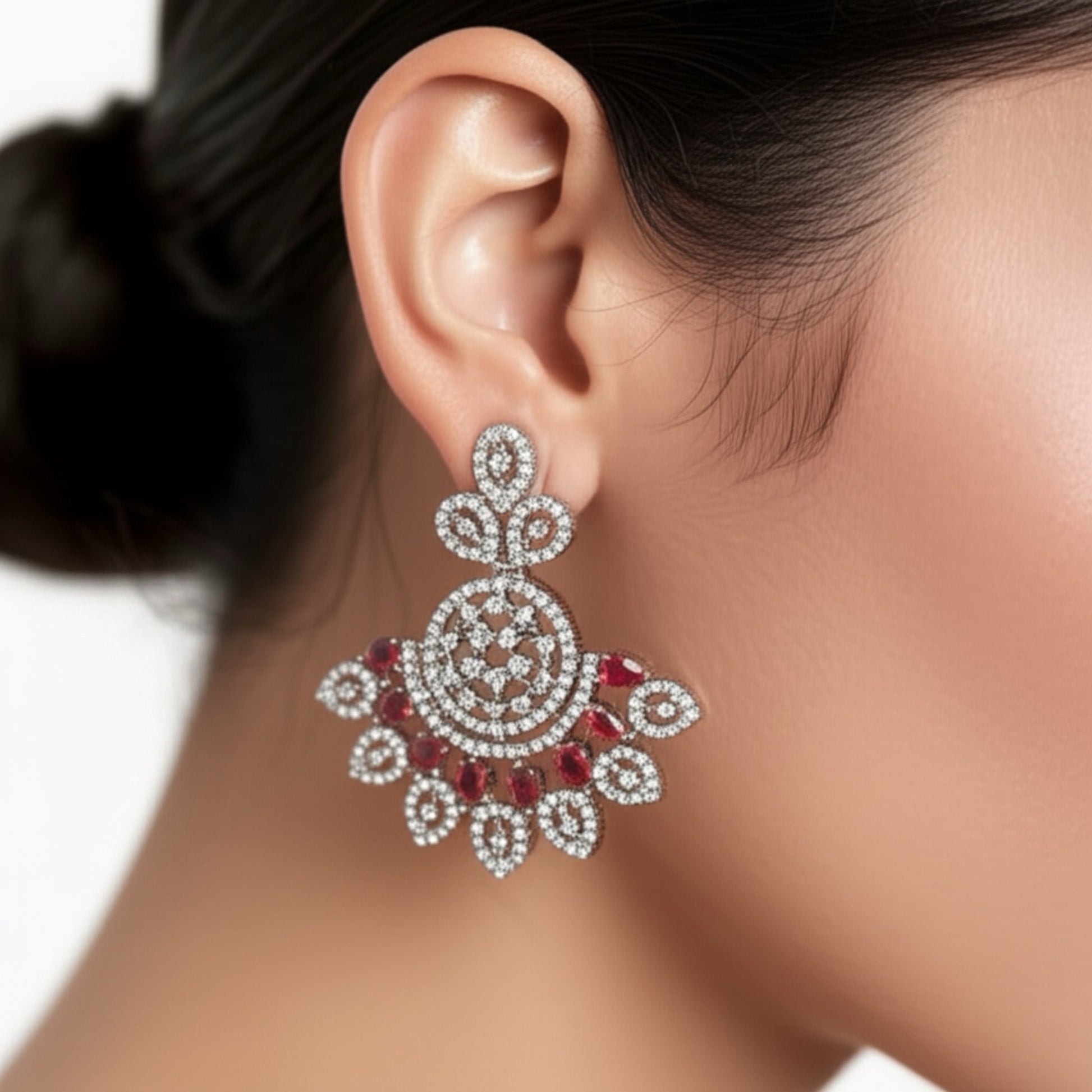 420228-R Earring With Rhodium Plating-Ruby