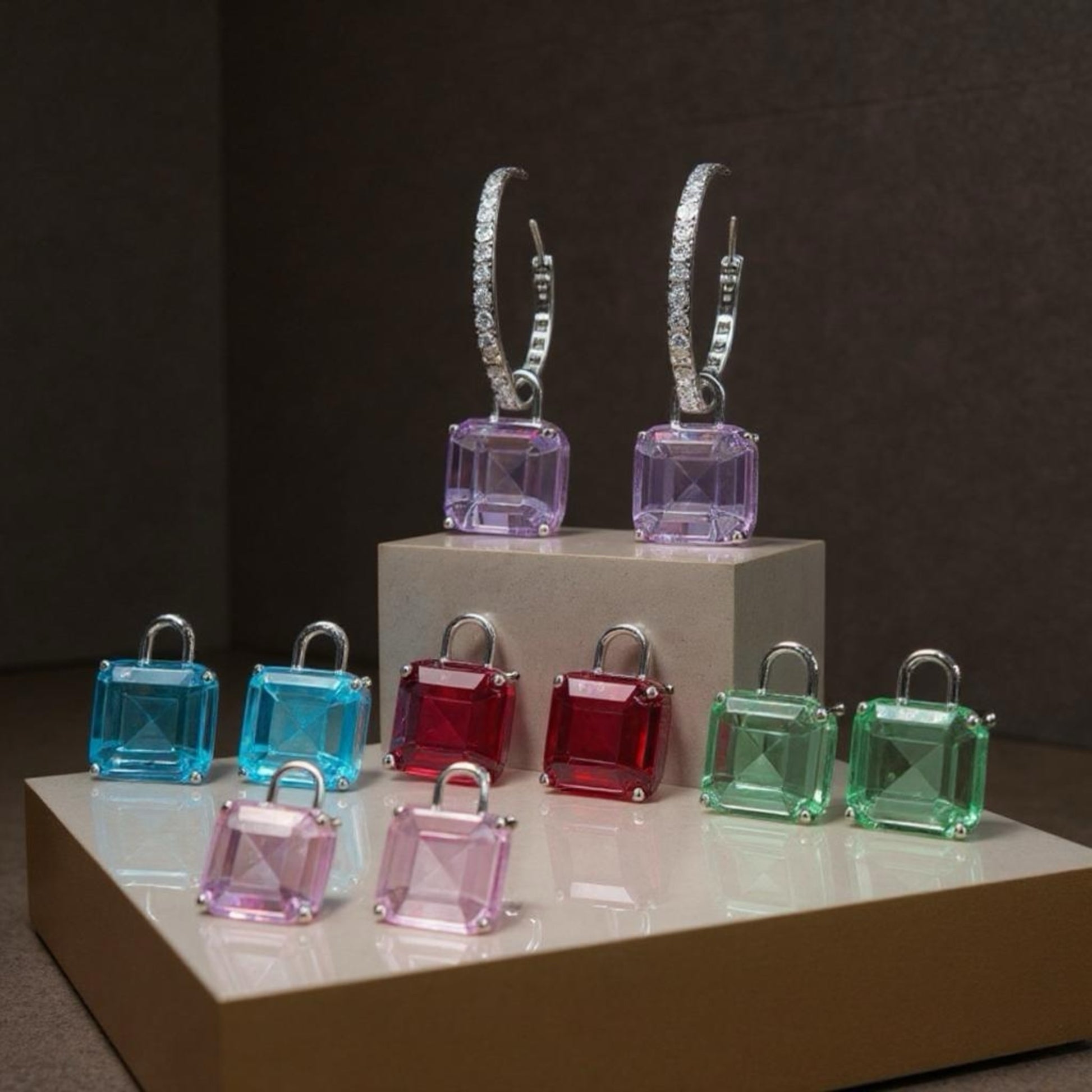 427434 Cz Changeable Stone Earring With Rhodium Plating