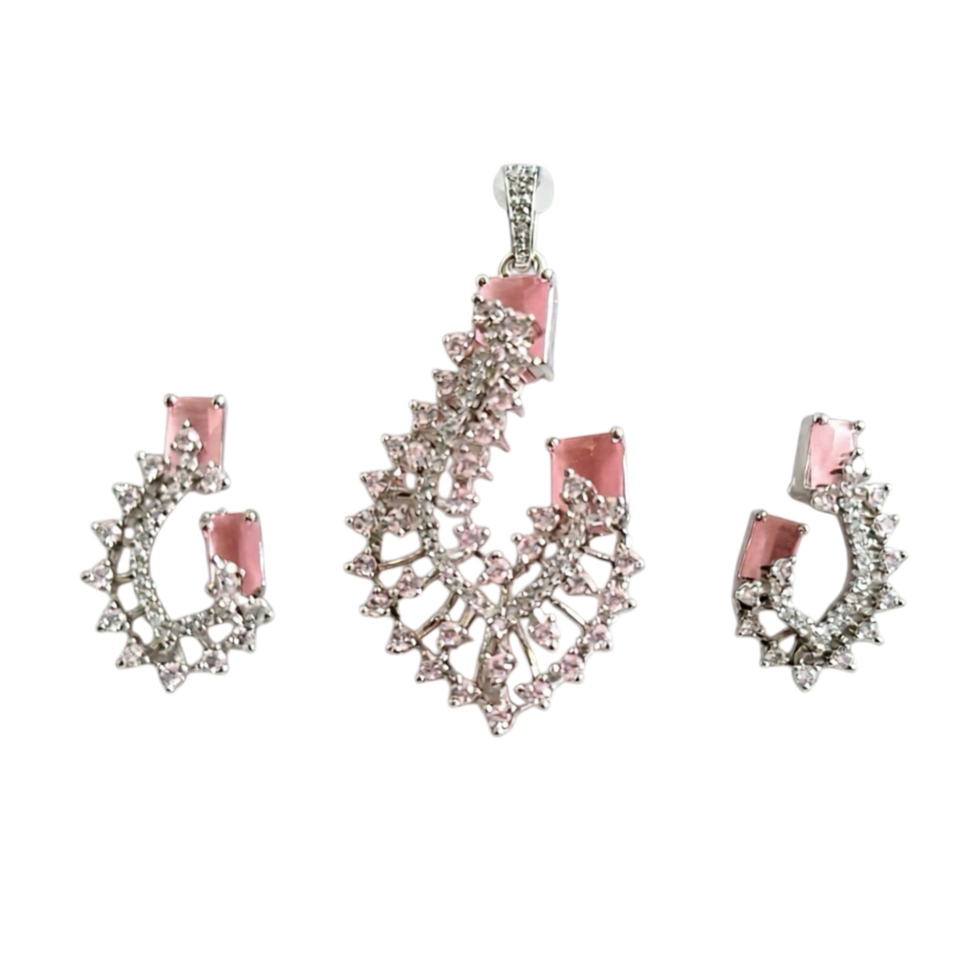 435238-American Diamond Delicate Pendant Set With Rhodium Plating-Pink
