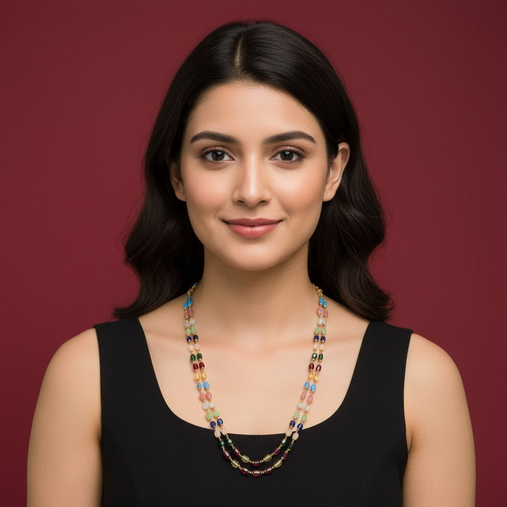 439027 Cubic Zirconia Mala Necklace With Gold Plating-Multi