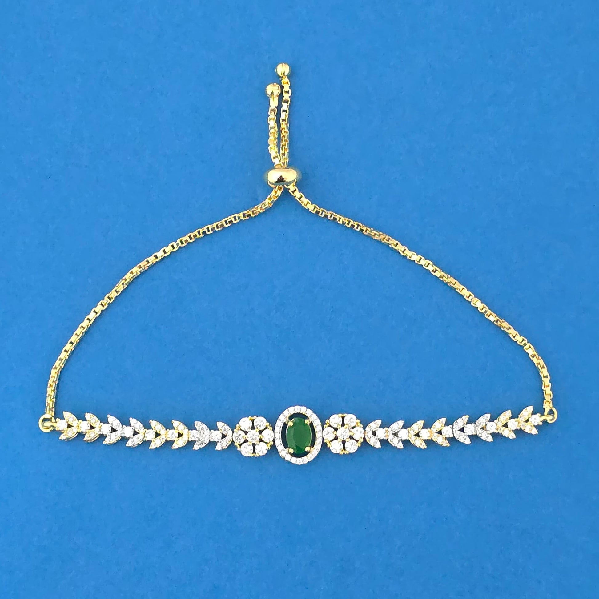 439543 Cubic Zirconia Adjustable Bracelet With 2 Tone Plating-Green