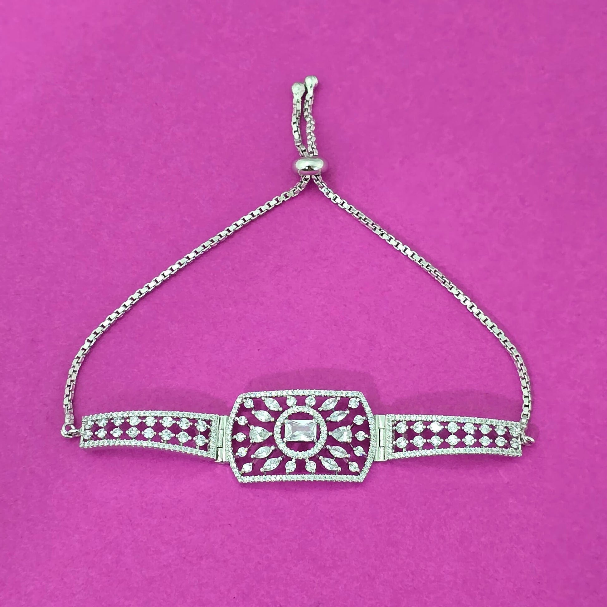 439749 Cubic Zirconia Adjustable Bracelet With Rhodium 2 Tone Plating-Silver