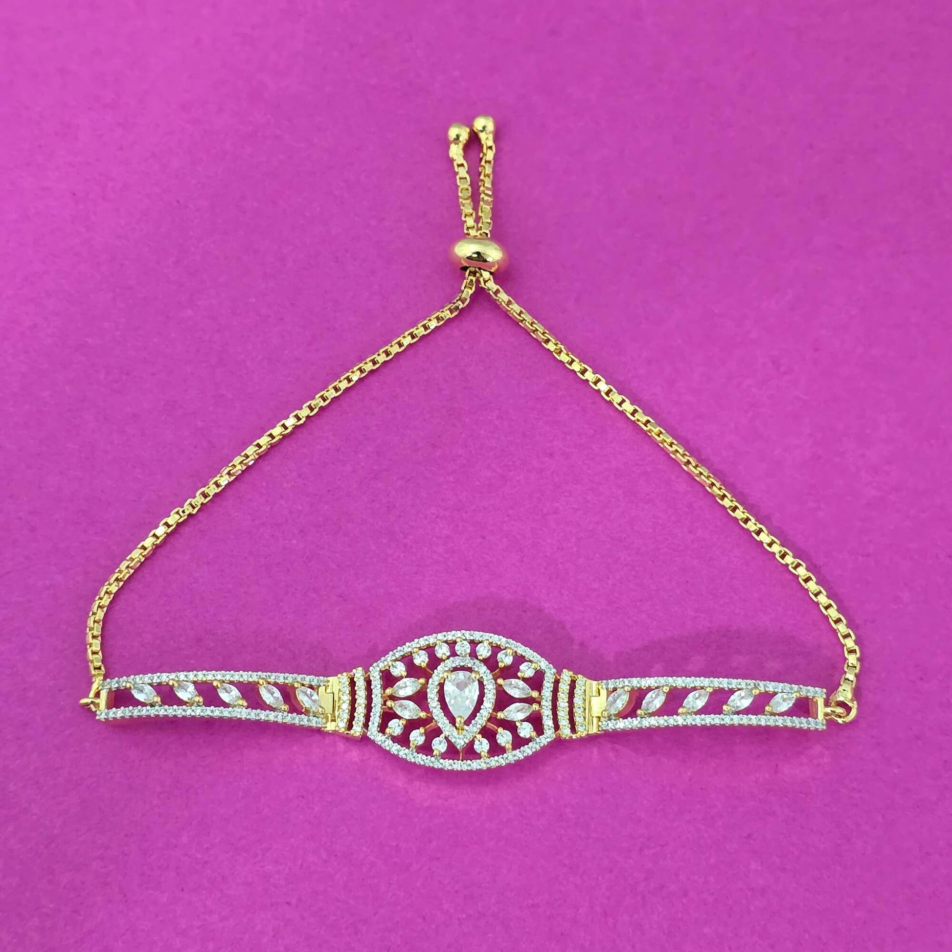 439752 Cubic Zirconia Adjustable Bracelet With Rhodium 2 Tone Plating