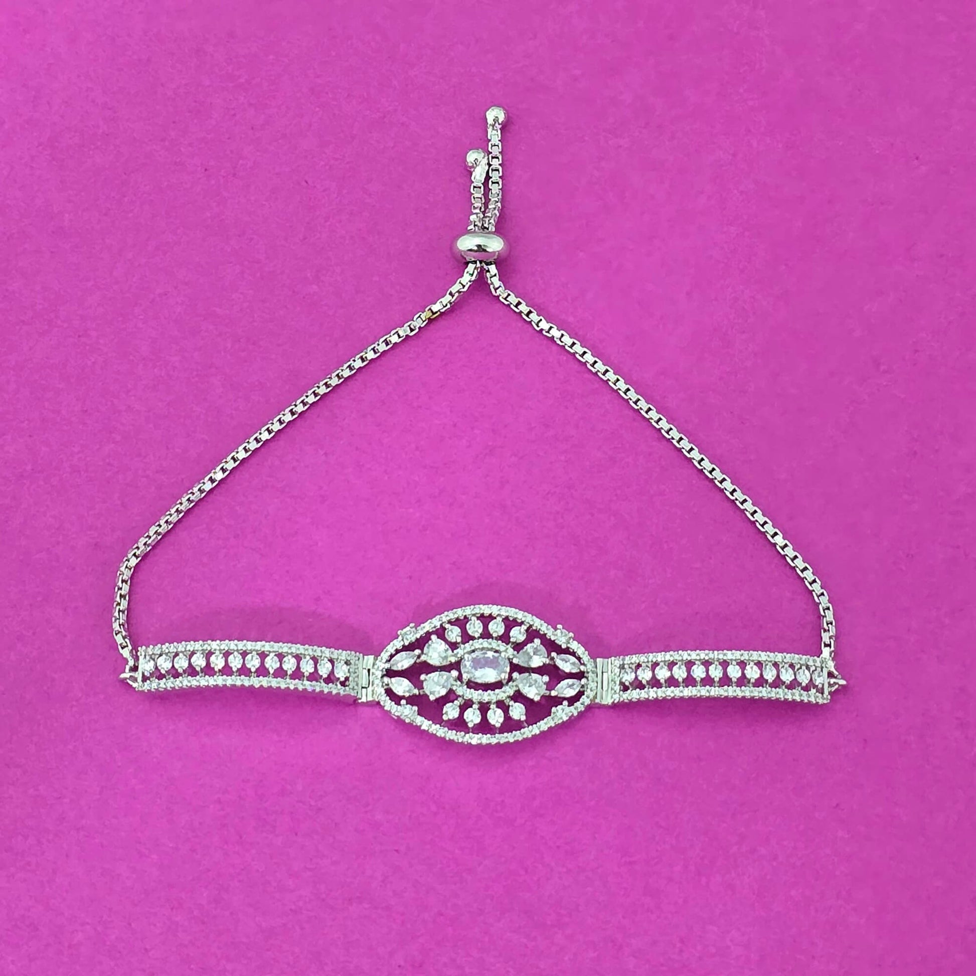 439753 Cubic Zirconia Adjustable Bracelet With Rhodium 2 Tone Plating-Silver