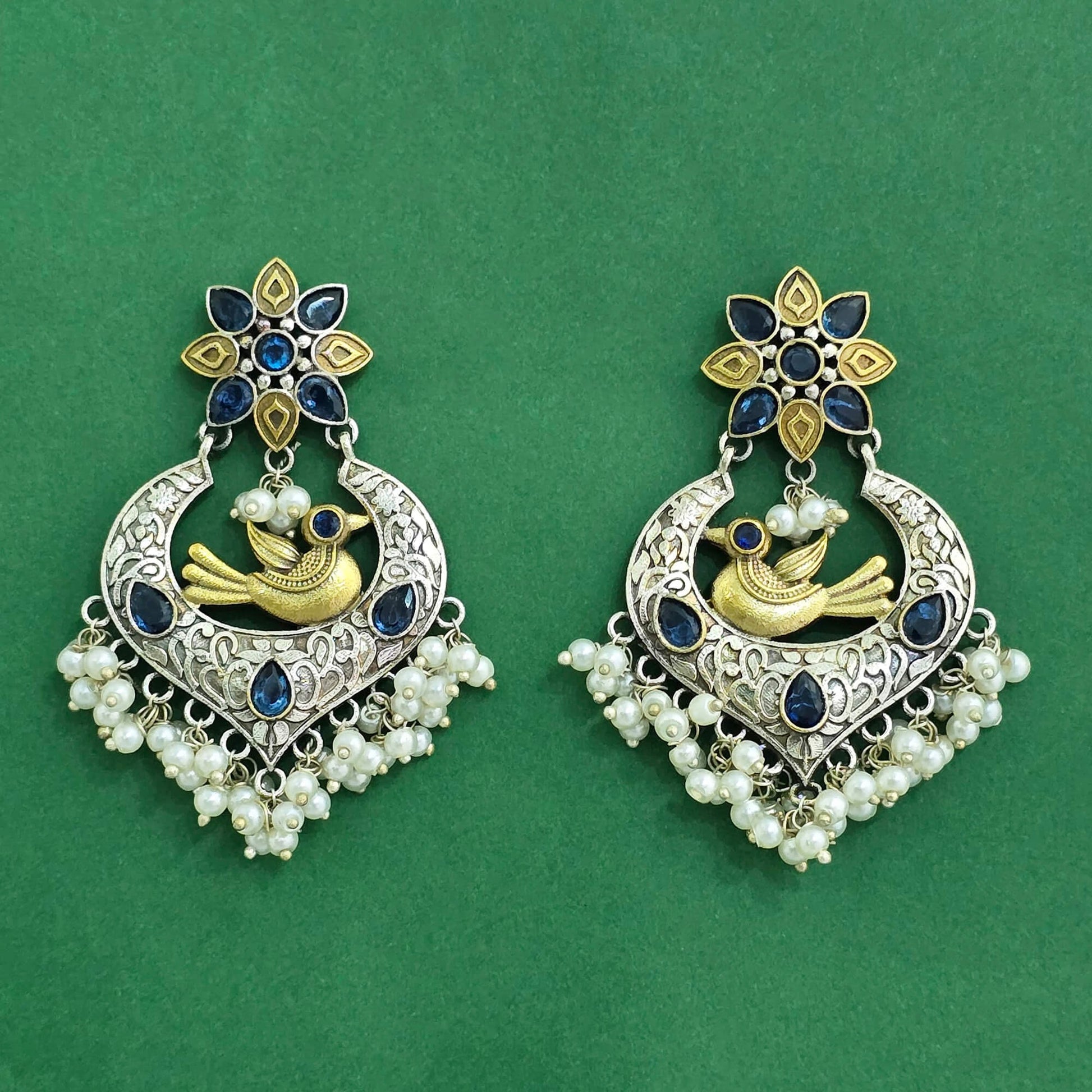 809597 Oxidised Classic Earring With 2 Tone Plating-Blue
