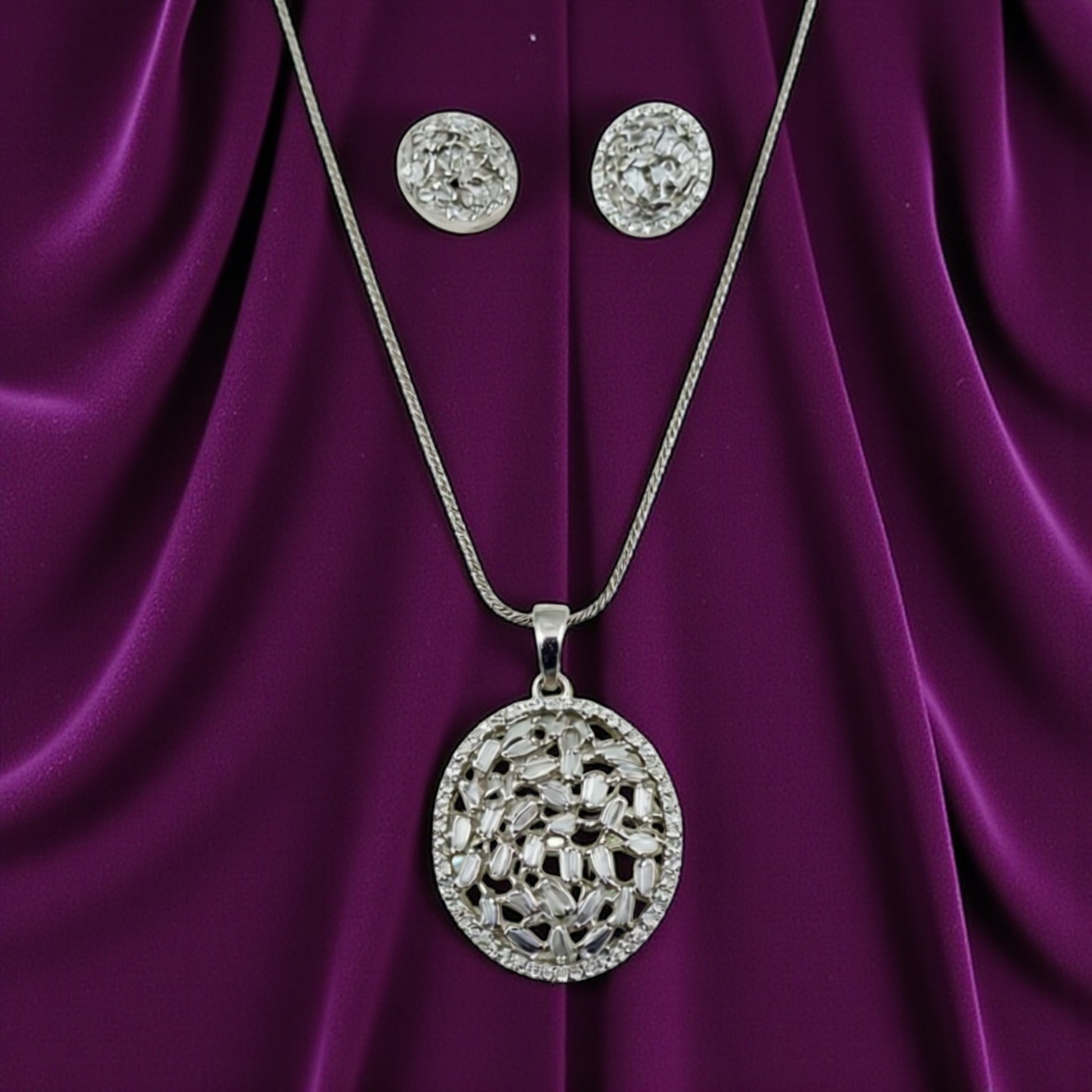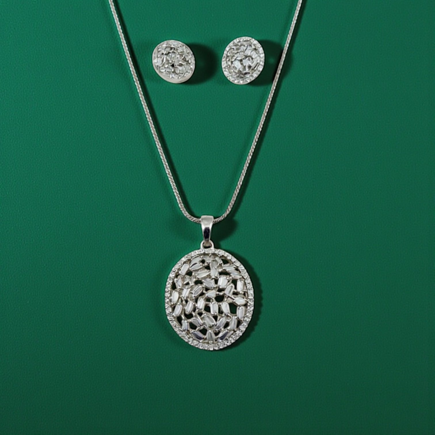91909-PS-American Diamond Delicate Pendant Set With Gold Plating-Design 2