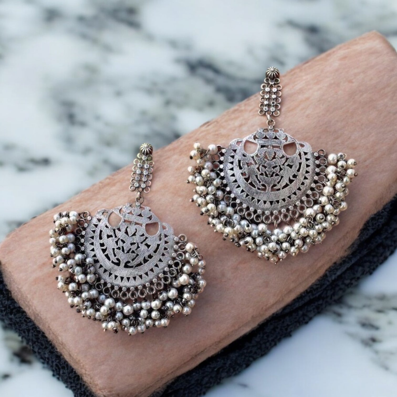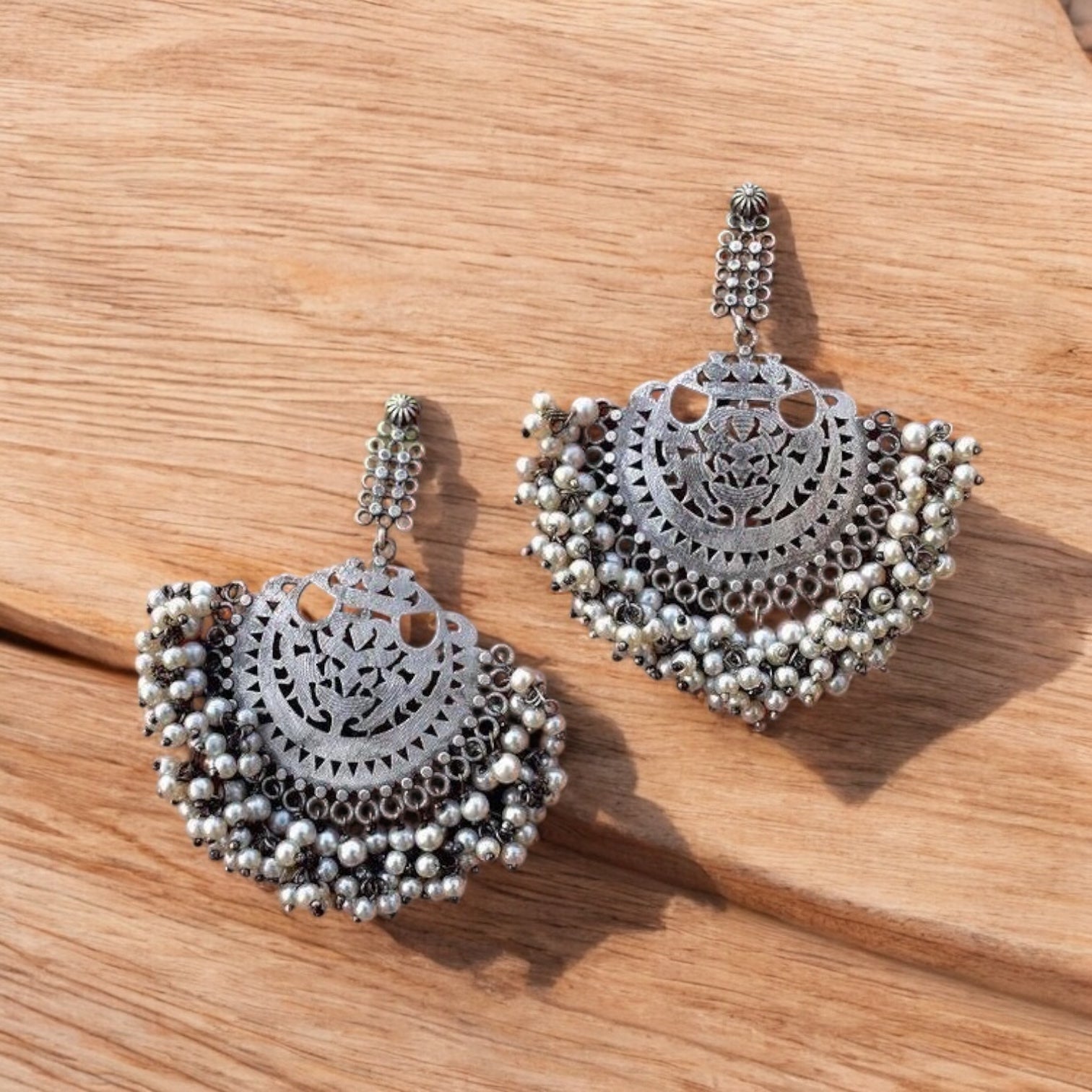 93509-ERO Pretty Precious Fashion Oxidised Silver Stylish Party Wear Earrings for Women and Girls