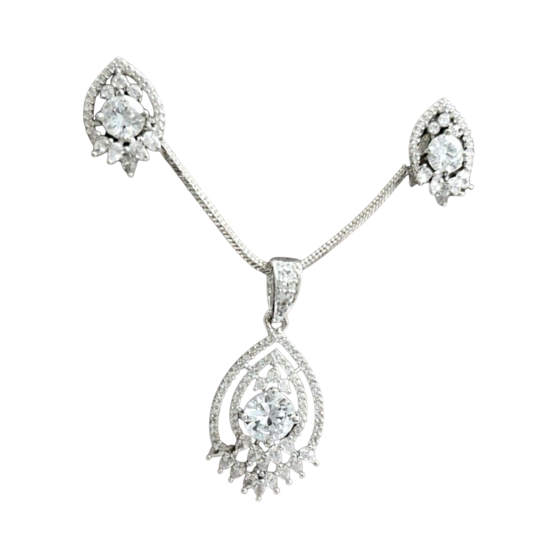 93909-PS-American Diamond Delicate Pendant Set With Rhodium Plating-White