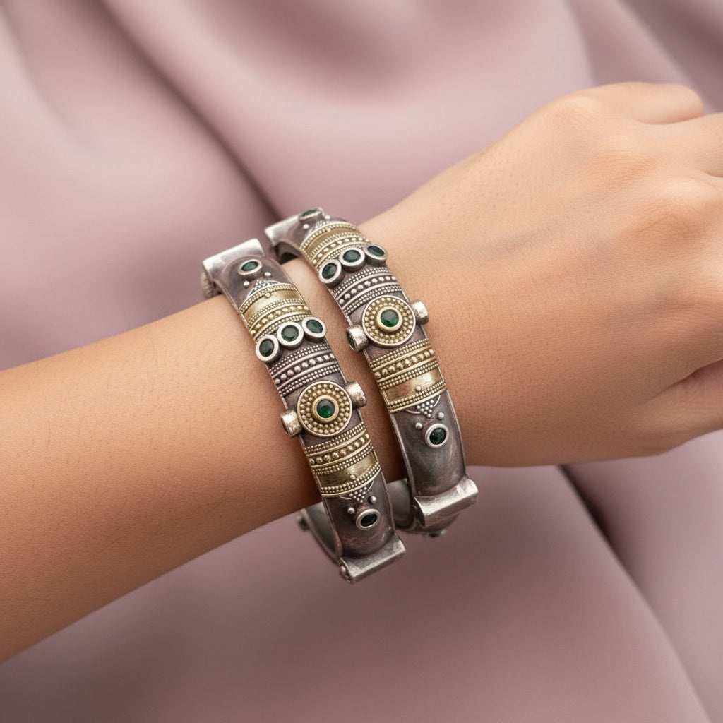 94509-KDO Classic Kada With Oxidised Plating-Design 2-Green