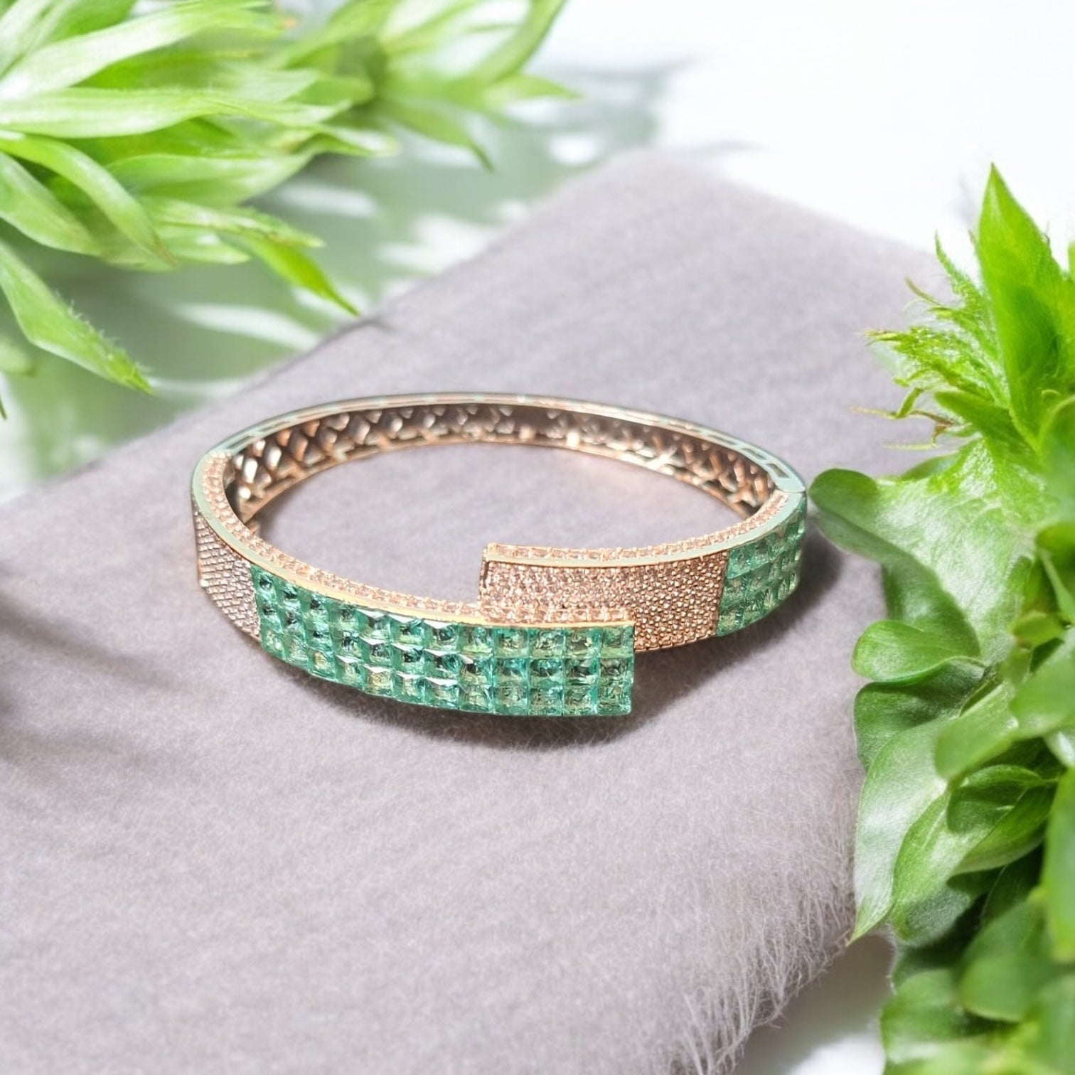 94559-KD Cubic Zirconia Classic Kada With Rhodium Plating-Green