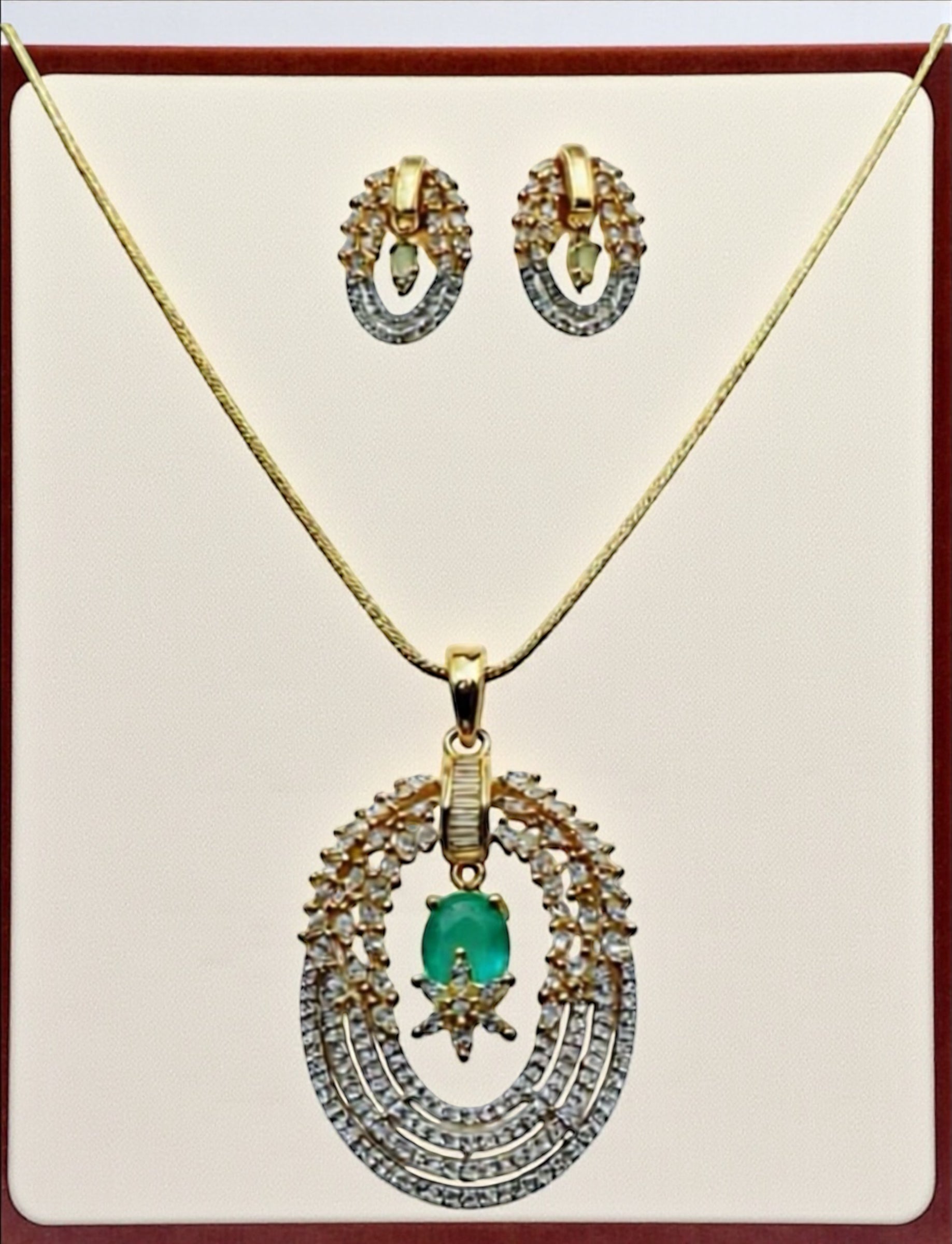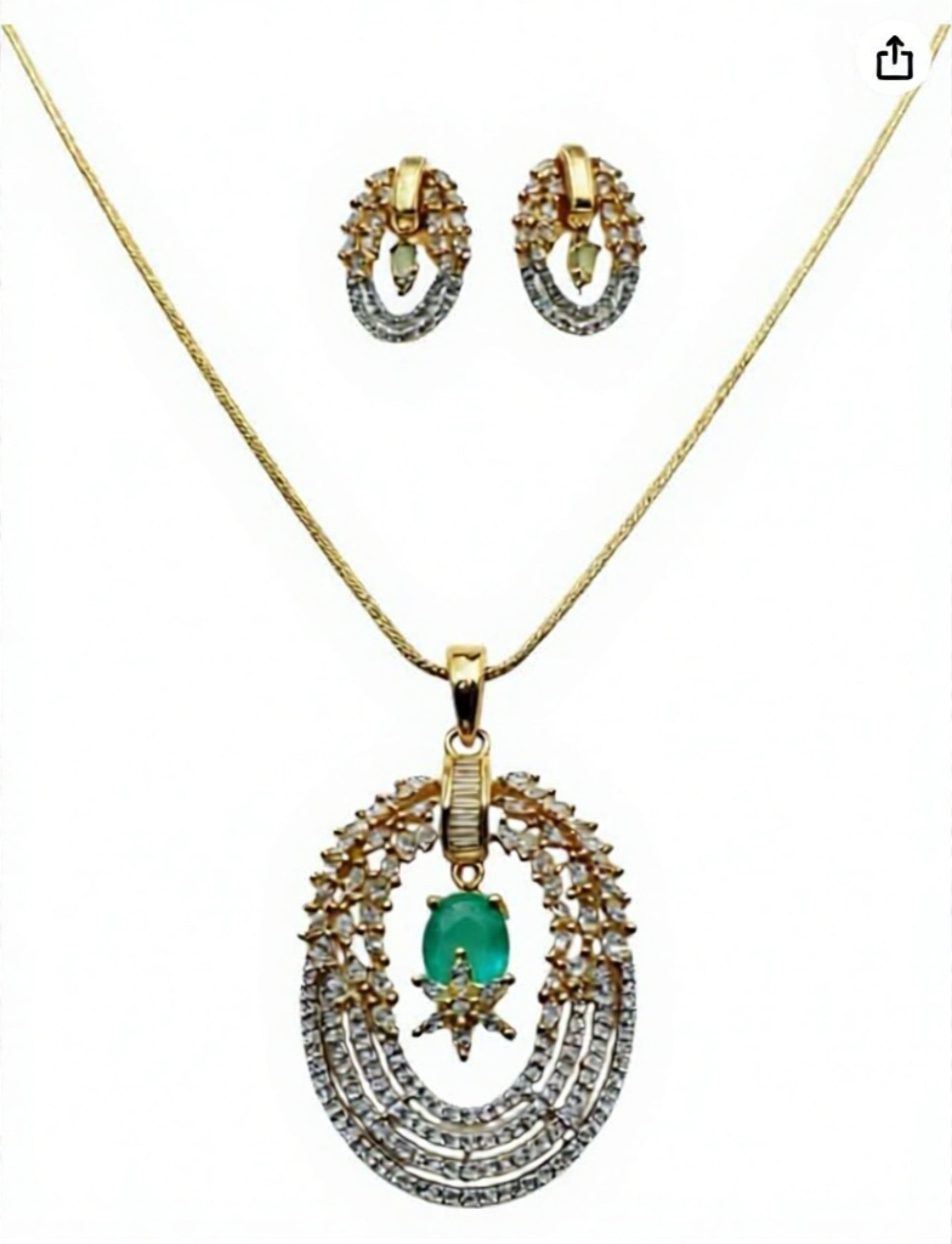 96159-PS-American Diamond Delicate Pendant Set With Gold Plating-Mint