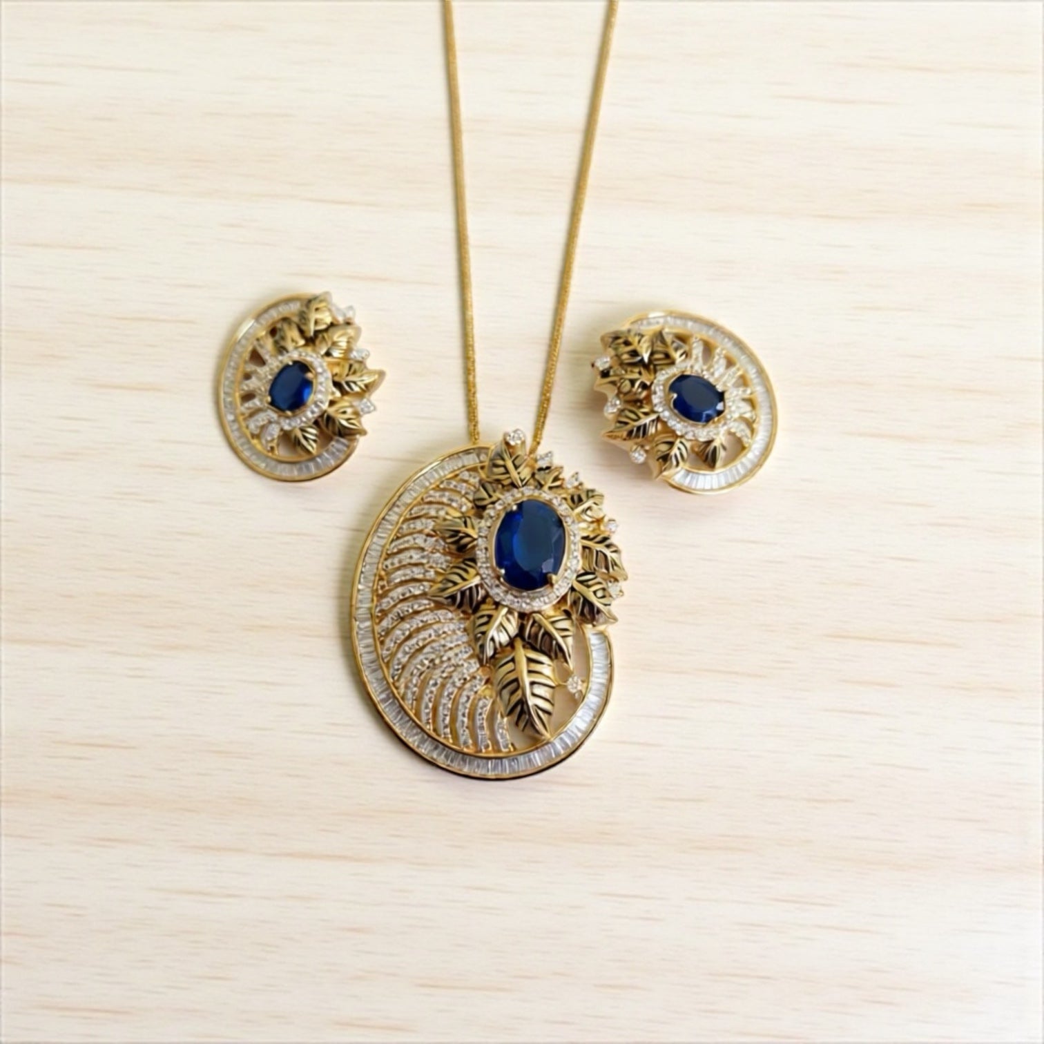 98009-PS-American Diamond Delicate Pendant Set With Gold Plating-Dark Blue